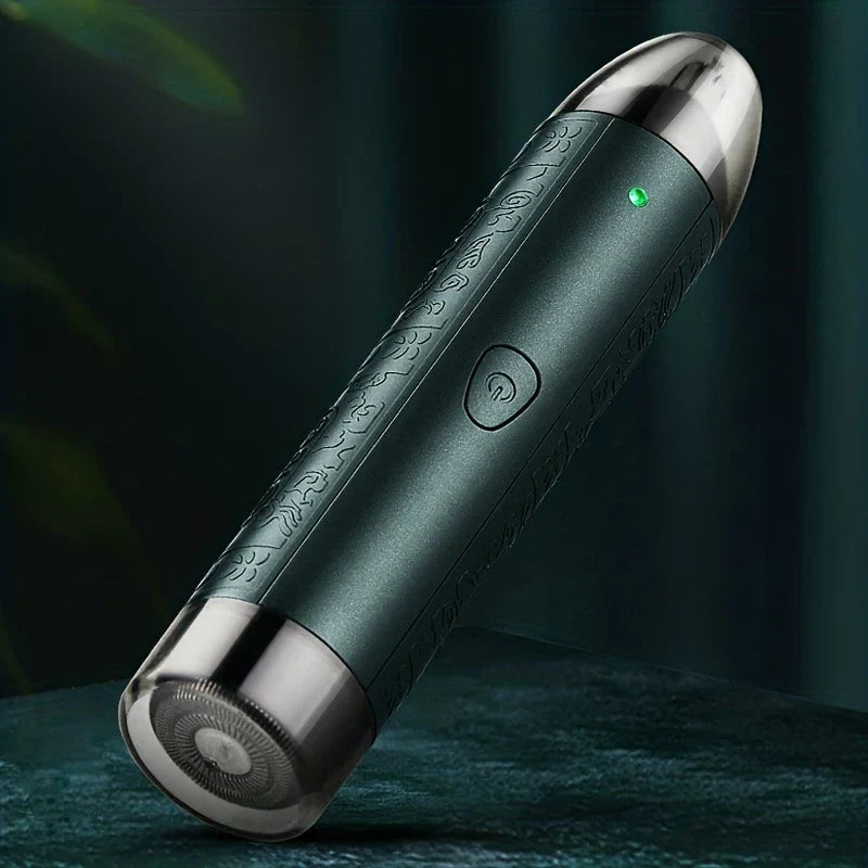 Handle essential grooming tasks easily on the go with this 2-in-1 Portable Electric Shaver and Nose Trimmer, powered via USB. Combines facial shaving with nose/ear trimming. Offered by New Home Goods.