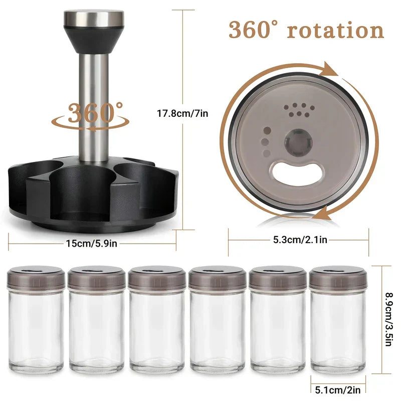 Organize spices efficiently and accessibly using this space-saving 2-in-1 Rotating Spice Rack Organizer, potentially featuring multiple tiers or functions. From New Home Goods.