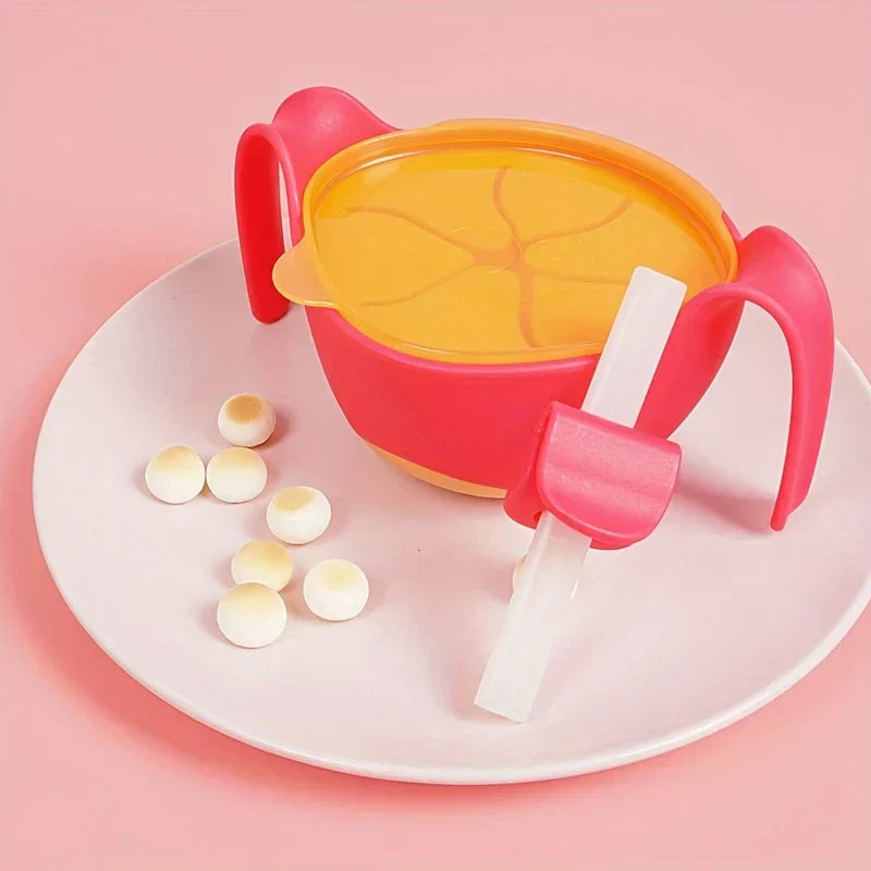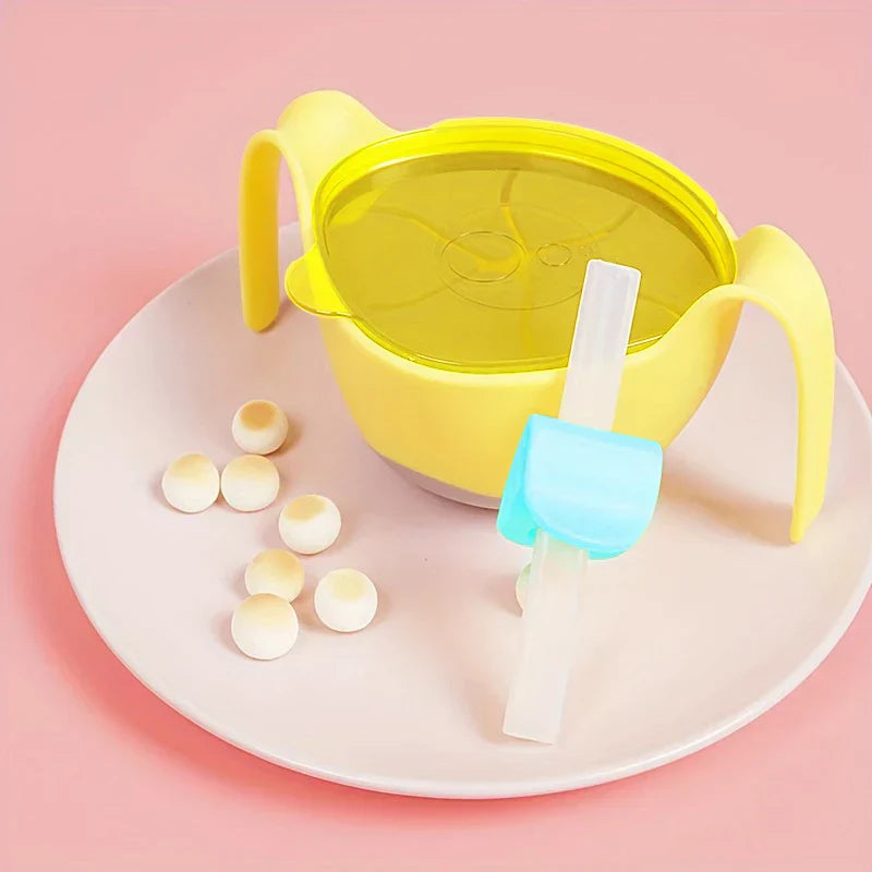 3-In-1 Spill Proof Baby Snack Bowl With Straw Lid