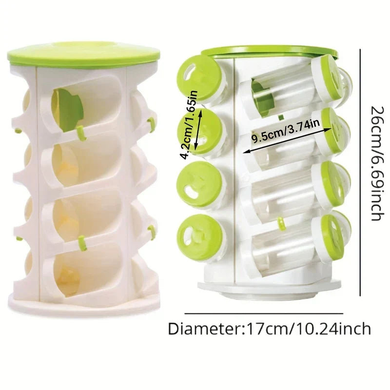 Store and dispense three different spices conveniently from one unit using this 3-Section Rotating Spice Container Shaker. Rotating top selects spice. Offered by New Home Goods.