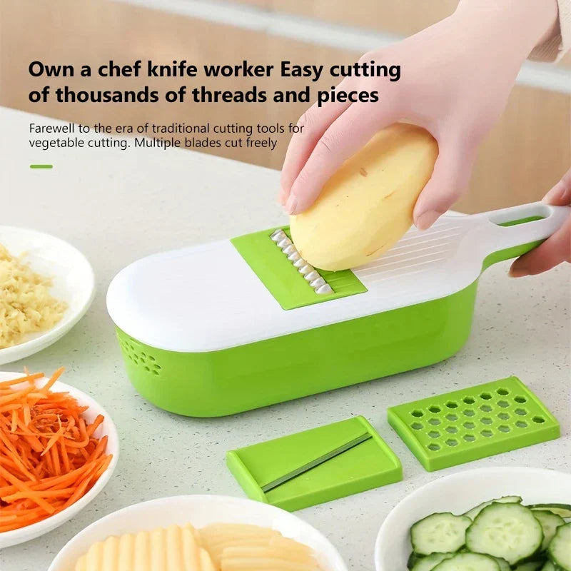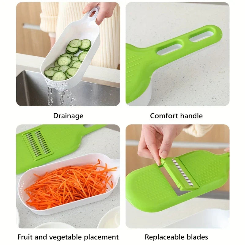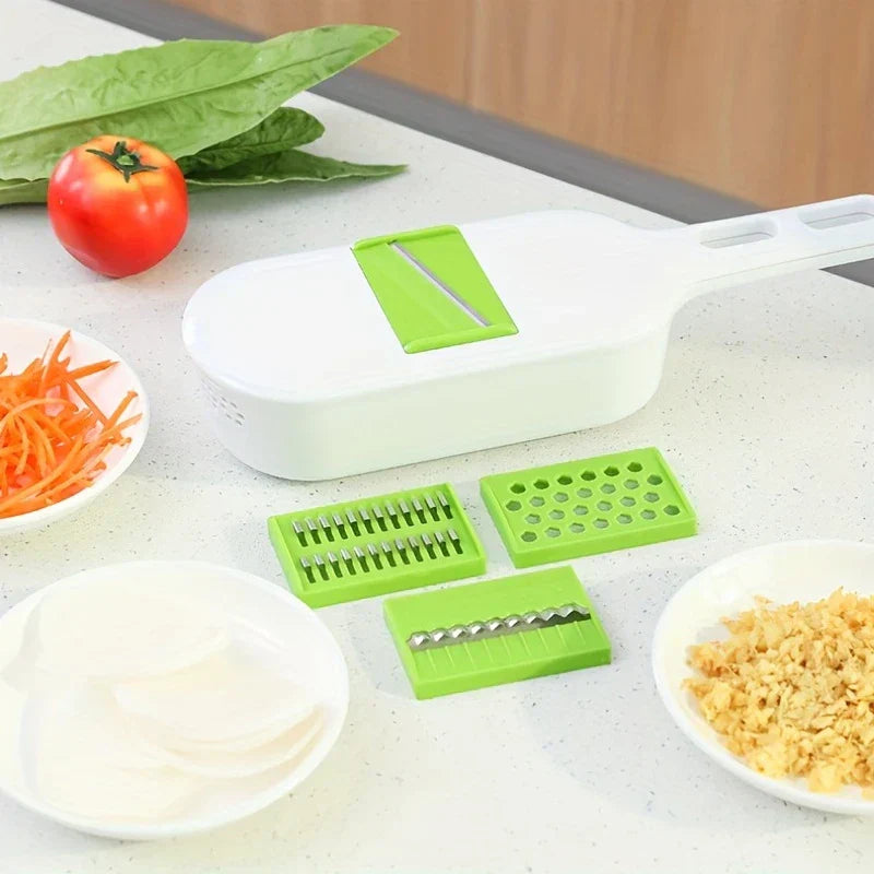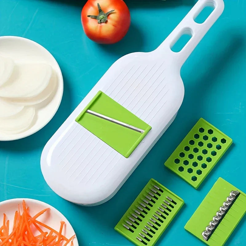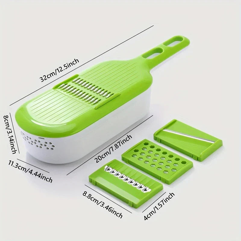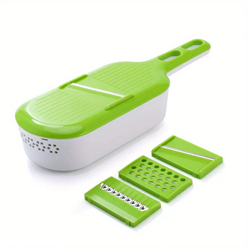 Handle multiple vegetable prep tasks efficiently with this versatile 4-in-1 Mandoline Slicer Grater Vegetable Cutter tool. Includes blades for slicing, grating, and more. From New Home Goods.