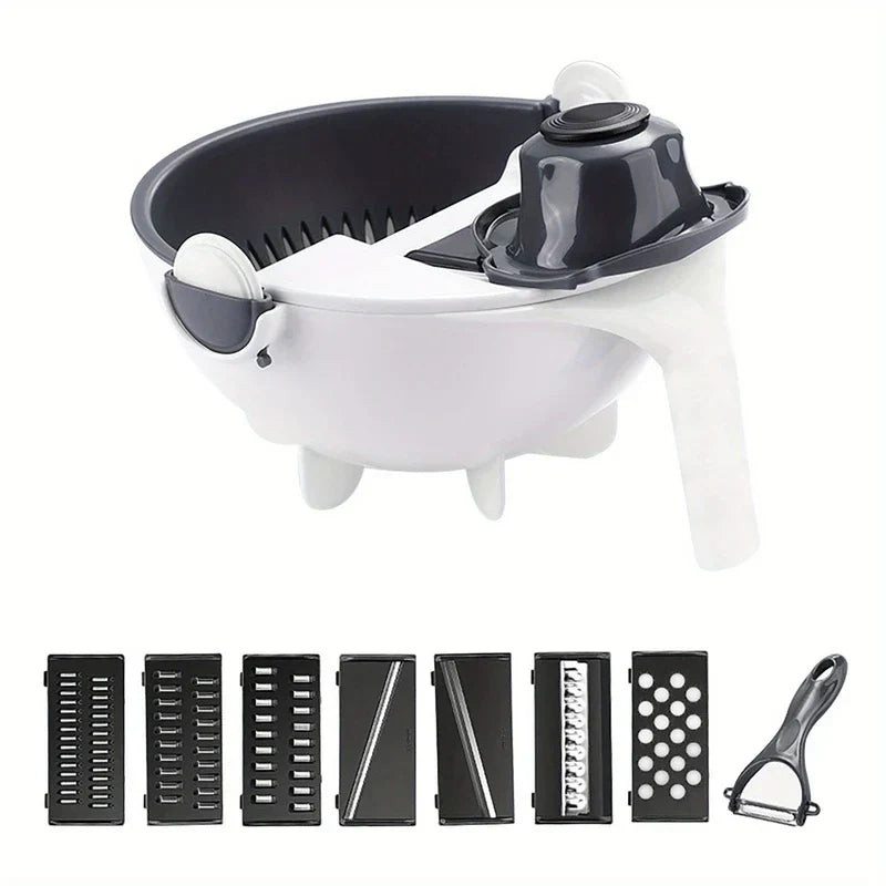 Handle a wide range of vegetable prep tasks efficiently using this highly versatile 9-in-1 Vegetable Chopper Mandoline Slicer Dicer kit. Offers numerous cutting options. Offered by New Home Goods.