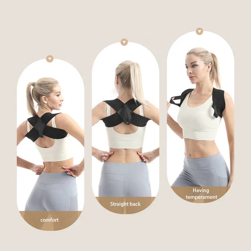 Improve your posture and support your back with this Black Posture Corrector Back Brace. Designed to gently pull shoulders back for better alignment. Offered by New Home Goods.