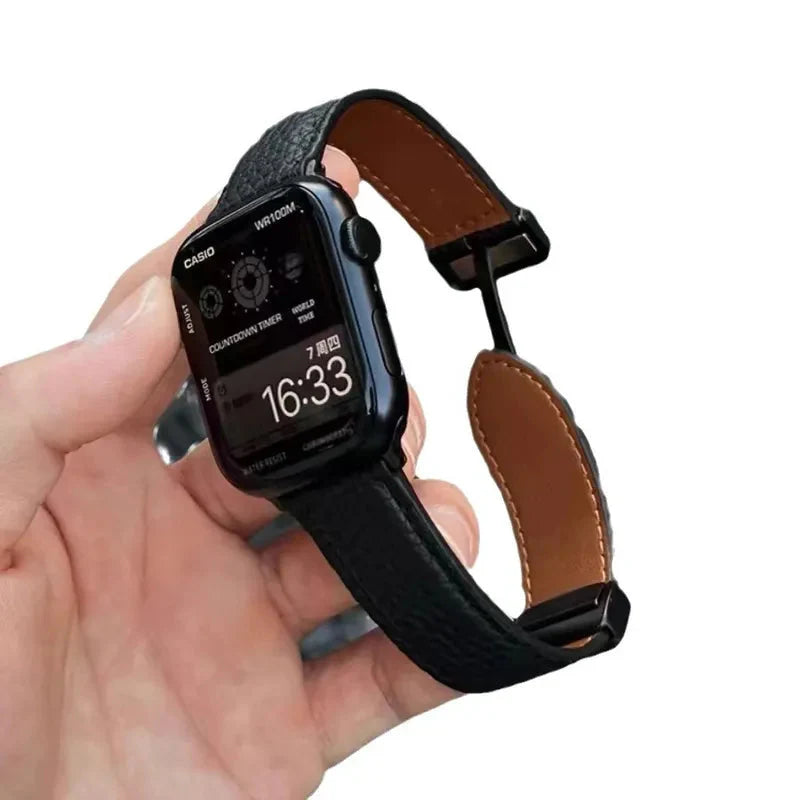 Elevate your Apple Watch style with our premium Apple Watch Leather Band. Made from pebbled genuine leather, this strap combines durability, comfort, and timeless sophistication. Whether you’re heading to a business meeting or enjoying a casual outing, the fine craftsmanship ensures you always look polished and stylish. Soft to the touch and built for long-lasting wear, it’s the perfect upgrade for anyone who values both fashion and function.