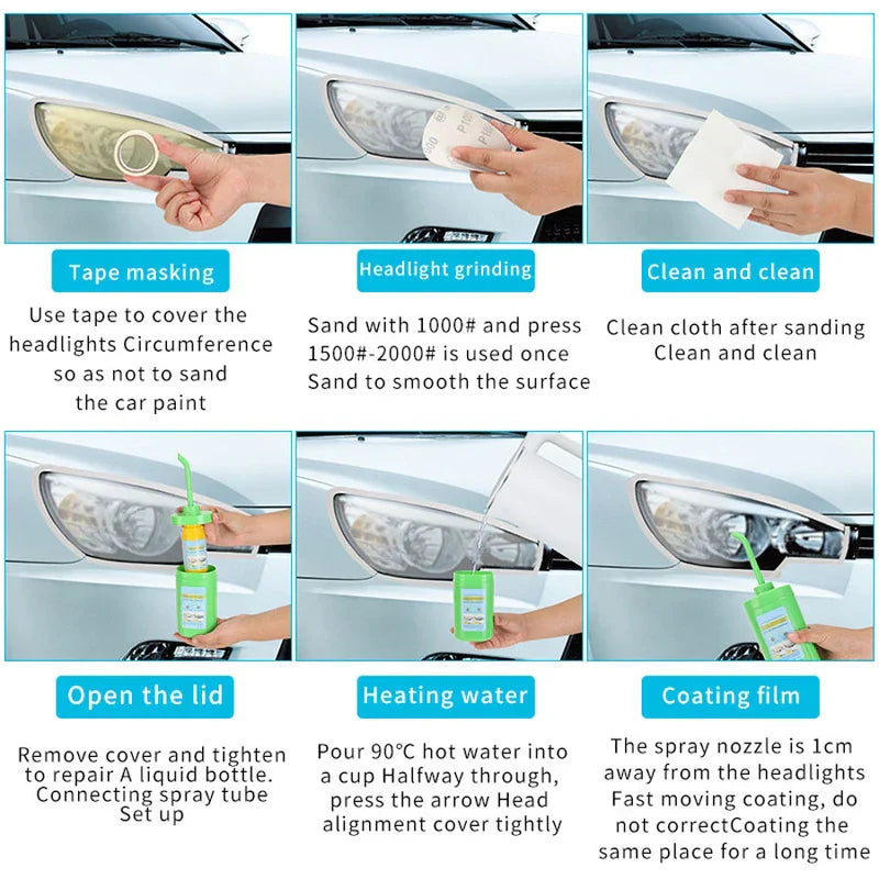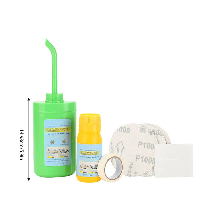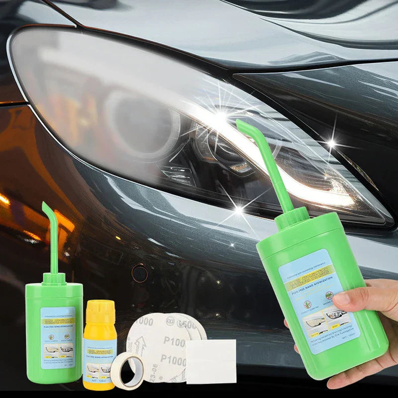 Restore cloudy car headlights with the SBJ-1009 Car Headlight Restoration Kit featuring Nano Repair Liquid. Helps improve clarity and brightness. Offered by New Home Goods.