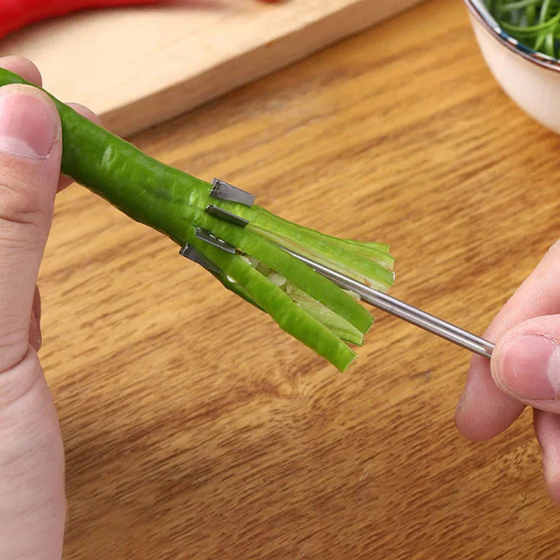 Shred, cut, or slice green onions (scallions) precisely with this Scallion Shredder Cutter Slicer Tool. Designed for efficient preparation. Offered by New Home Goods.