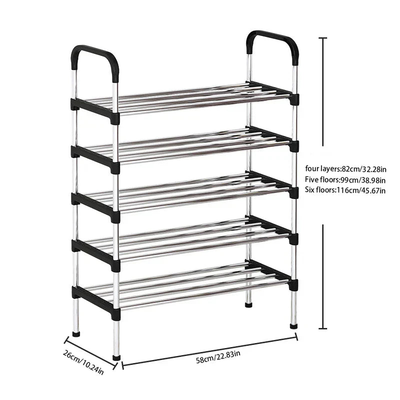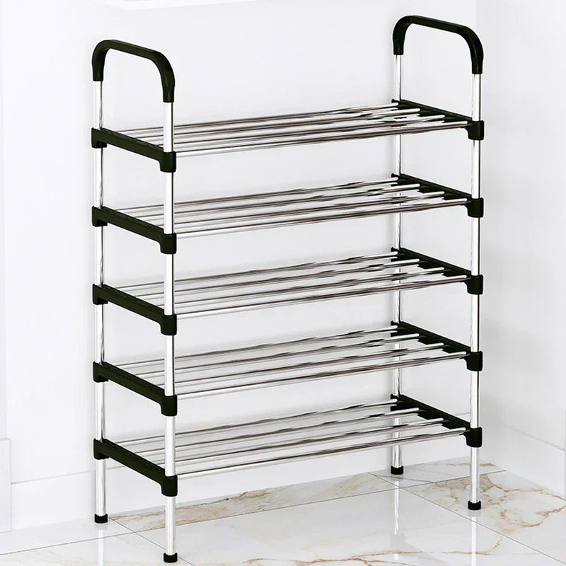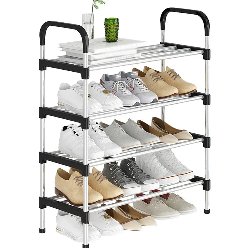 Store shoes off the floor and organized using this Shoe Rack Organizer Stand Shelf. Basic shelving unit designed for holding multiple pairs of shoes. From New Home Goods.