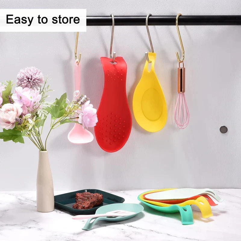 Provide a convenient spot for messy cooking spoons with this Silicone Kitchen Utensil Spoon Rest. Heat-resistant rest protects countertops. From New Home Goods.