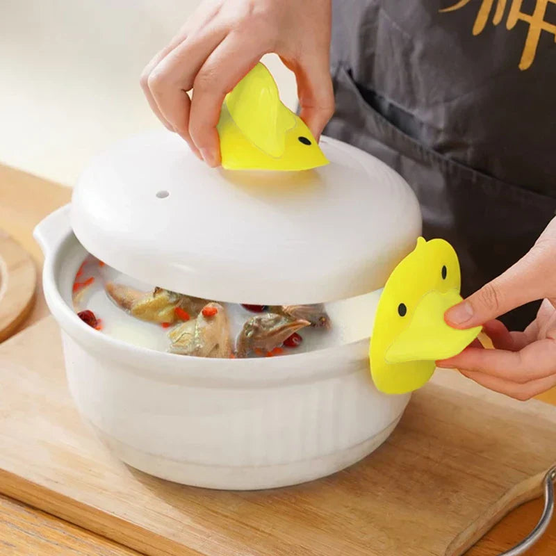 Handle hot pot handles safely and comfortably with this Silicone Pot Clip Handle Holder Grip. Slides onto handles to provide heat protection and grip. Offered by New Home Goods.