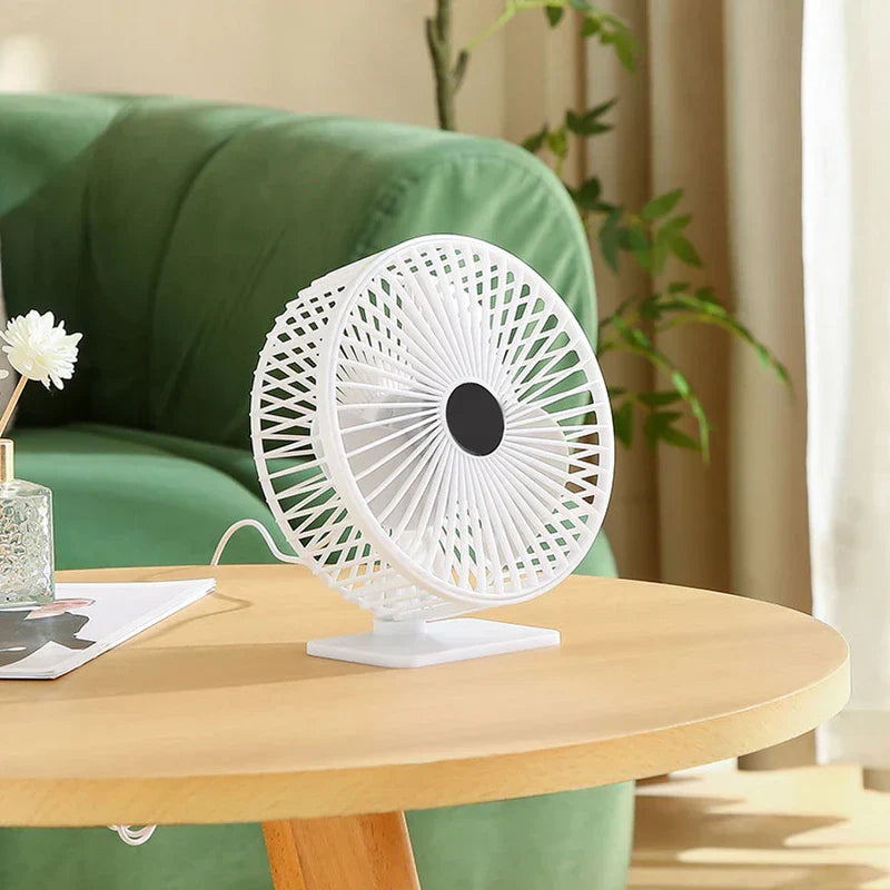 Stay cool without distraction using this Small Quiet Personal Desk Fan suitable for Office or Home Use. Provides gentle airflow with minimal noise. Offered by New Home Goods.