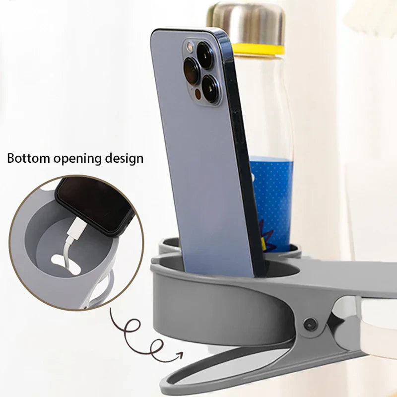 Keep drinks secure and within reach using this Table Side Drink Beverage Clamp Holder Attachment. Clamps onto table edges to prevent spills. From New Home Goods.
