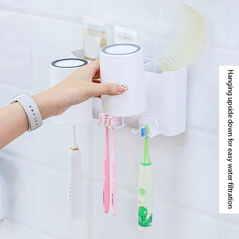 Triple Toothbrush Mouthwash Cup Holder Set